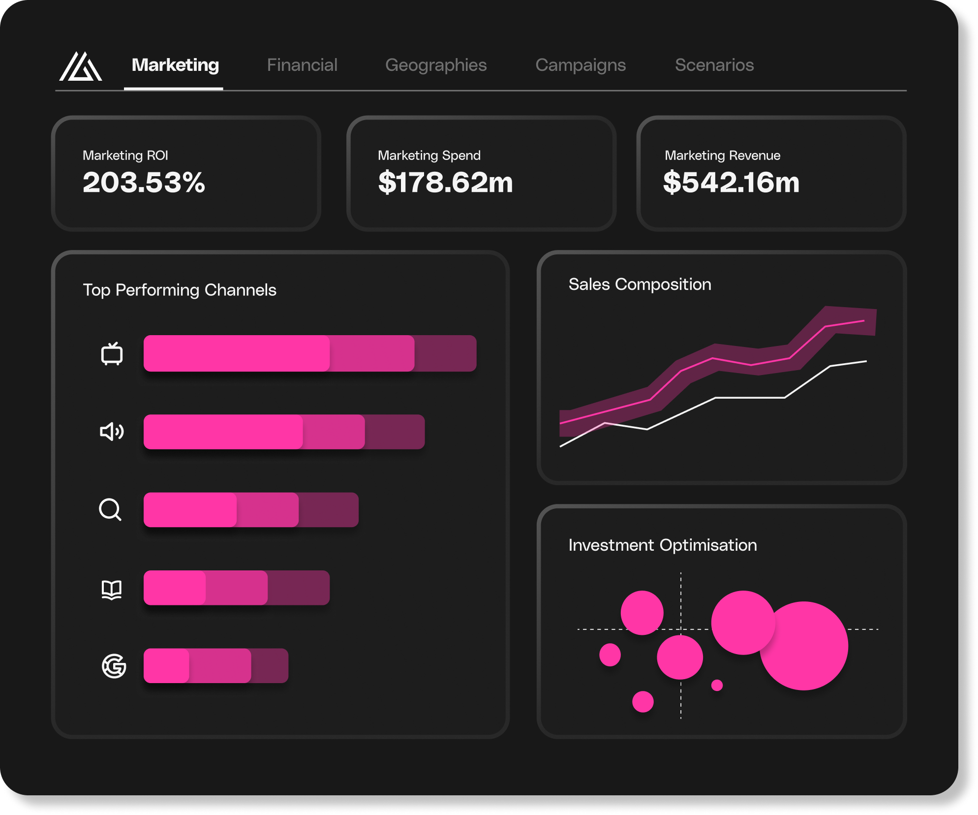 The promise of Mutinex GrowthOS marketing mix modeling is simple. It’s a decision engine to help teams organise, analyze and action marketing, brand and media data at scale. GrowthOS will fuel better decision making across your entire marketing mix.